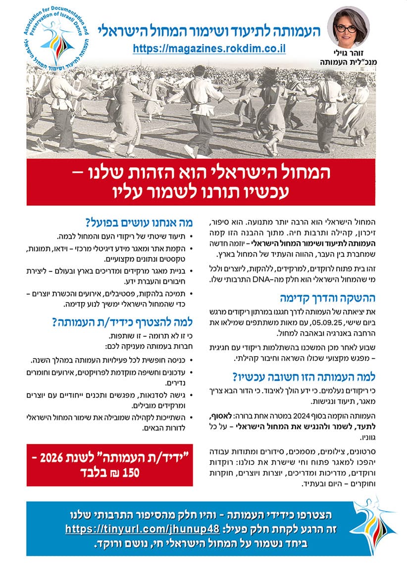בקישור הזה נשמח לקבל תרומות גדולות יותר: https://magazines.rokdim.co.il/en/support/