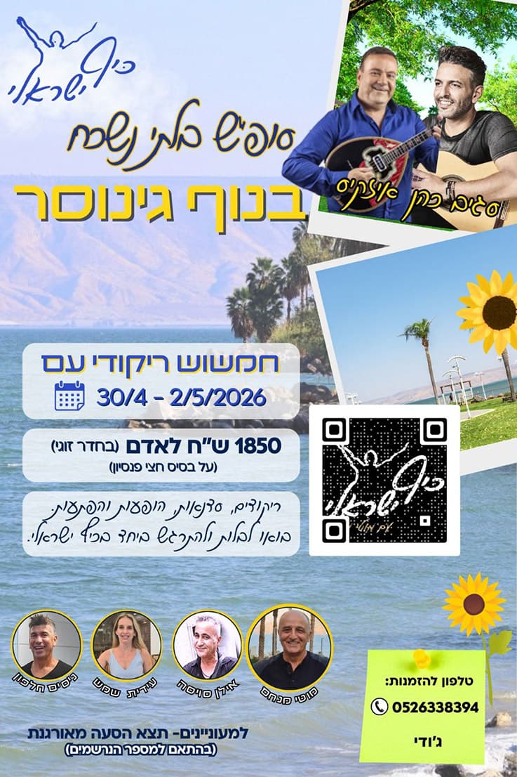 כיף ישראלי בסופ''ש במלון גנוסר על שפת הכינרת