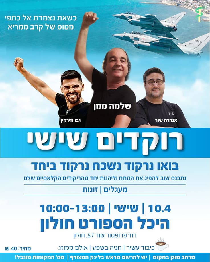 בשישי הקרוב 10.04.2026 רוקדים באולם הספורט בחולון , עם שלמה ממן , גבו מירקין ואנדרה שור החל מ 10:00 עד 13:00